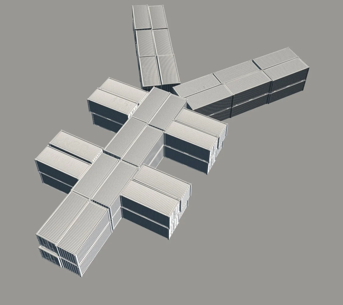 We started modelling high res containers in CGI using photographic textures to create realism, then once the structure of the containers was approved we worked them into a Japanese Yen shaped format. The trick to a successful image was in creating atmosphere via a dramatic lighting condition over which we had complete control.