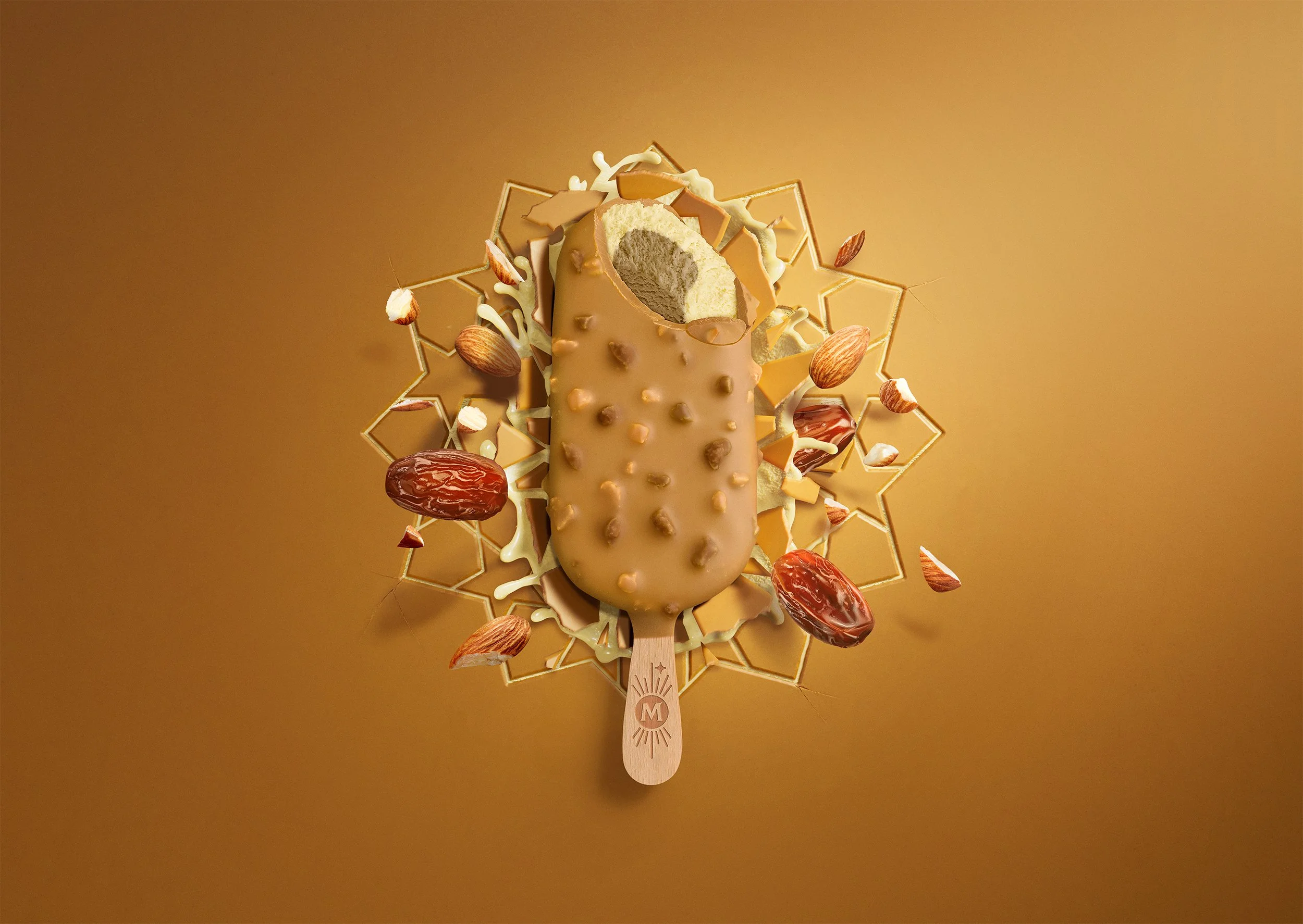 We used CGI and retouching to bring the exciting new Magnum Dubai Chocolare and Almon Dates Ice Creams to life.